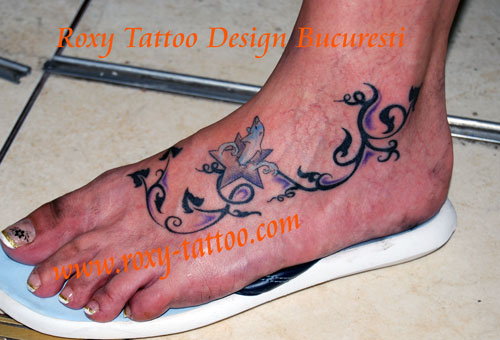 Pentru cei care vor sa si faca un tatuaj si vor sa l amplaseze pe zona picioarelor pe gambe sau pe talpa piciorului gasiti mai jos mai multe poze cu modele de tatuaje cu diverse desene cu stelute cu flori cu pasari cu modele tribale si celtice cu fluturi litere chinezesti etc. Tatuajele de trandafiri sunt atât de incredibil de uimitoare. Tatuaje pe picior fete. Tatuaje cu trandafiri pe spate 11.