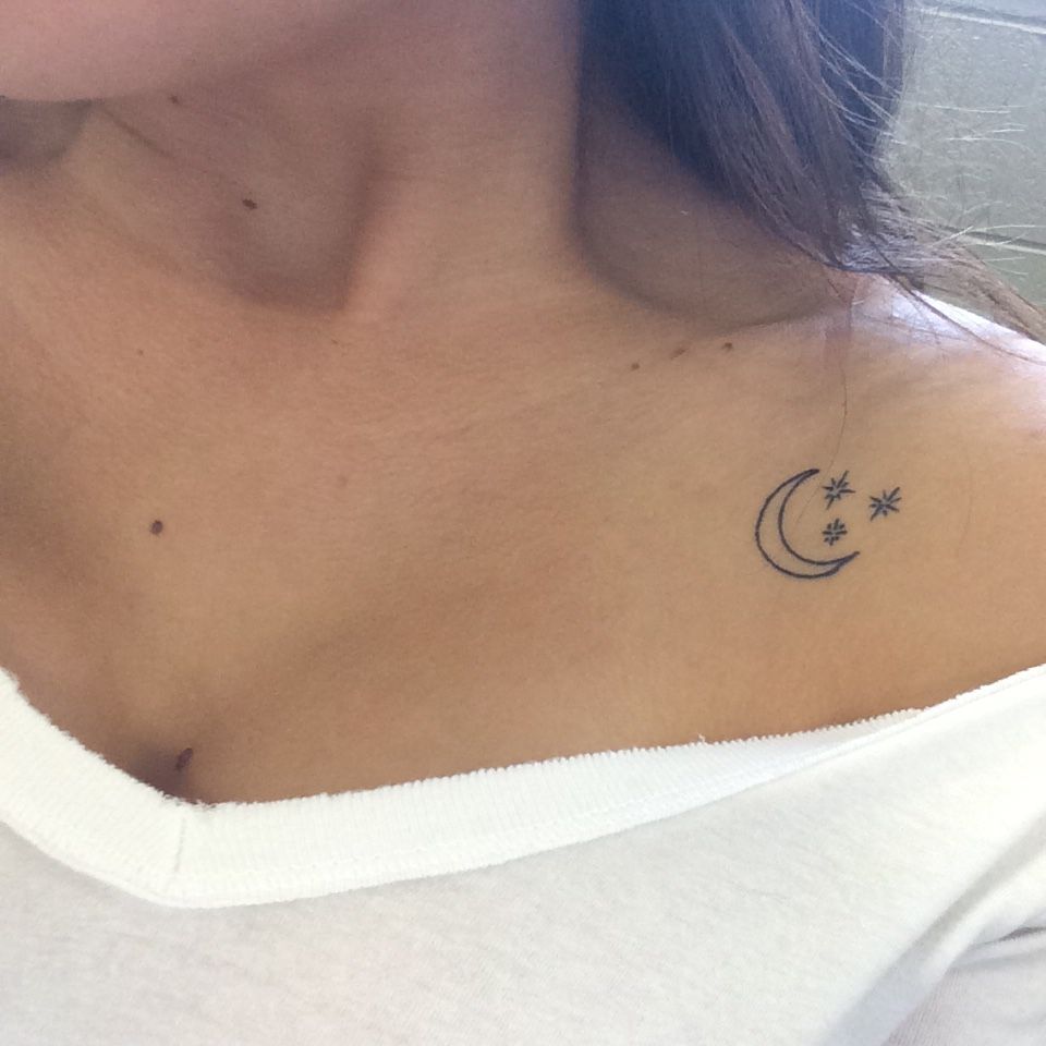 A Tiny Moon And Star Tattoo Each Star Represents Her Family Member So That She Tatuajes Lunas Y Estrellas Tatuaje De Estrella Tatuajes Elegantes
