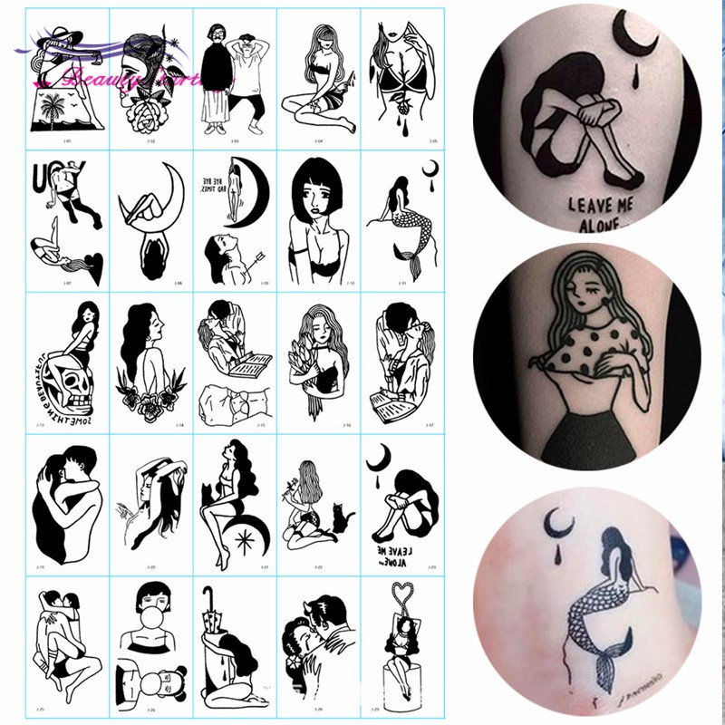Bt 30pcs Set Dark School Cool Girl Women Tattoos Female Temporary Tattoo Sticker Shopee Philippines