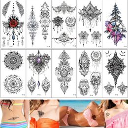 Temporary Tattoo Women Mehndi Henna Stickers For Hands Mandala Tattoo Black Sketches Tattoo Designs Lotus Peony Flowers Pattern Temporary Tattoos Aliexpress