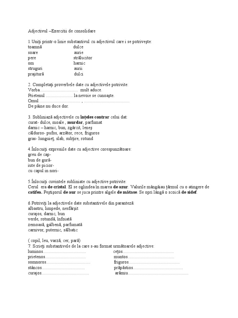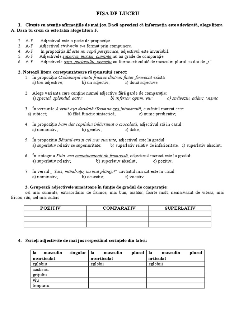 Părți De Vorbre Adjectiv Materiale Didactice Gramatică Părți