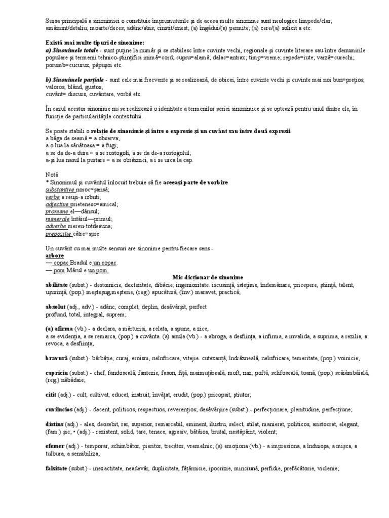 Sinonime 1 Our Teacher Gave Us This Summaries For Understanding Better The Grammar Studocu