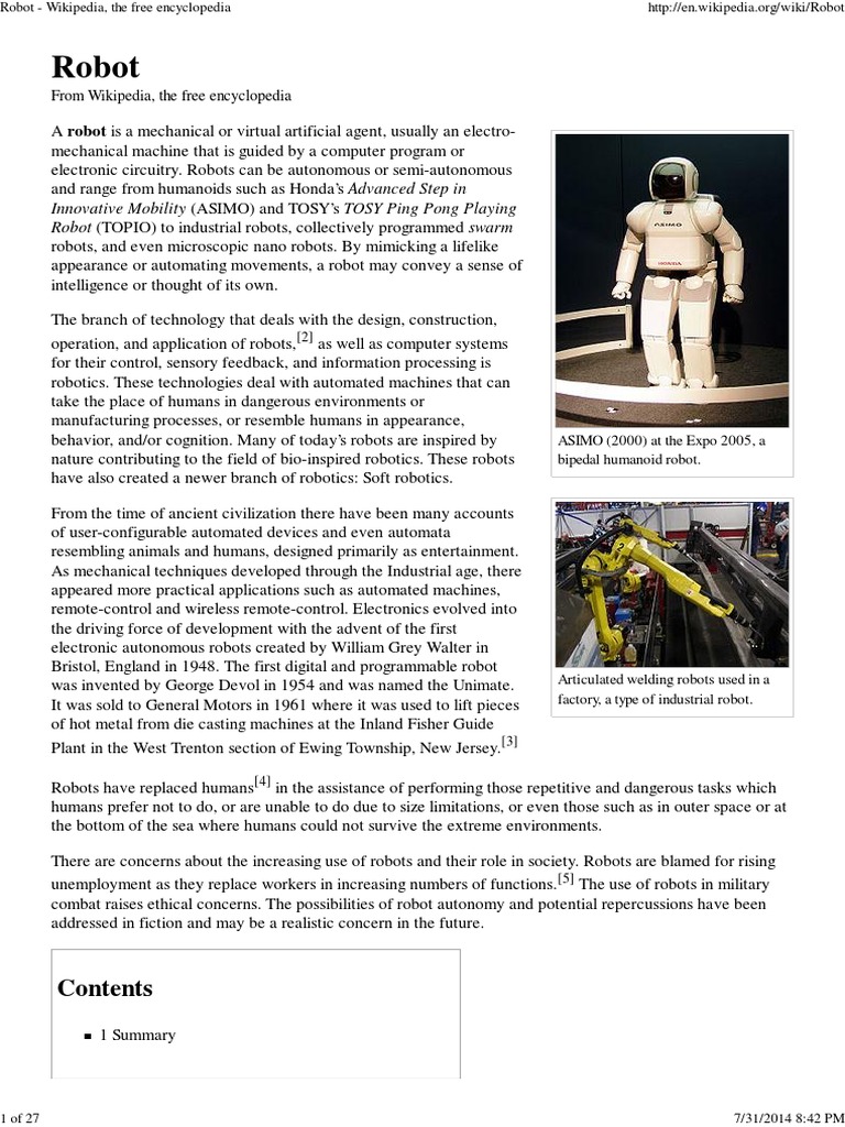Robot Wikipedia Robot Technology