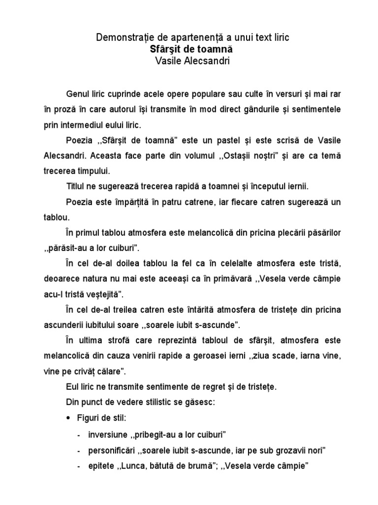 Sfarsit De Toamna De V Alecsandri