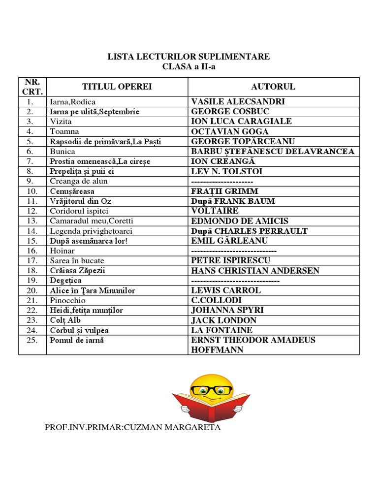 Lista Lecturilor Suplimentare Clasa Aii A