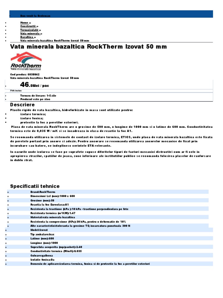 Vata Minerala Bazaltica Rocktherm Pret Producator Gecsat