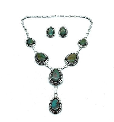 Navajo Turquoise Sterling Silver Necklace And Earrings Will Denetdale High Lonesome Trading