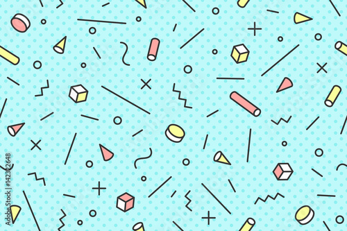 Seamless Mephis Graphic Pattern 80s 90s Trendy Styles On Blue Background Colorful Pattern With Different Shapes Objects Design For Wrapping Paper Fabric Background Wallpaper Vector Illustration Buy This Stock Vector And Explore