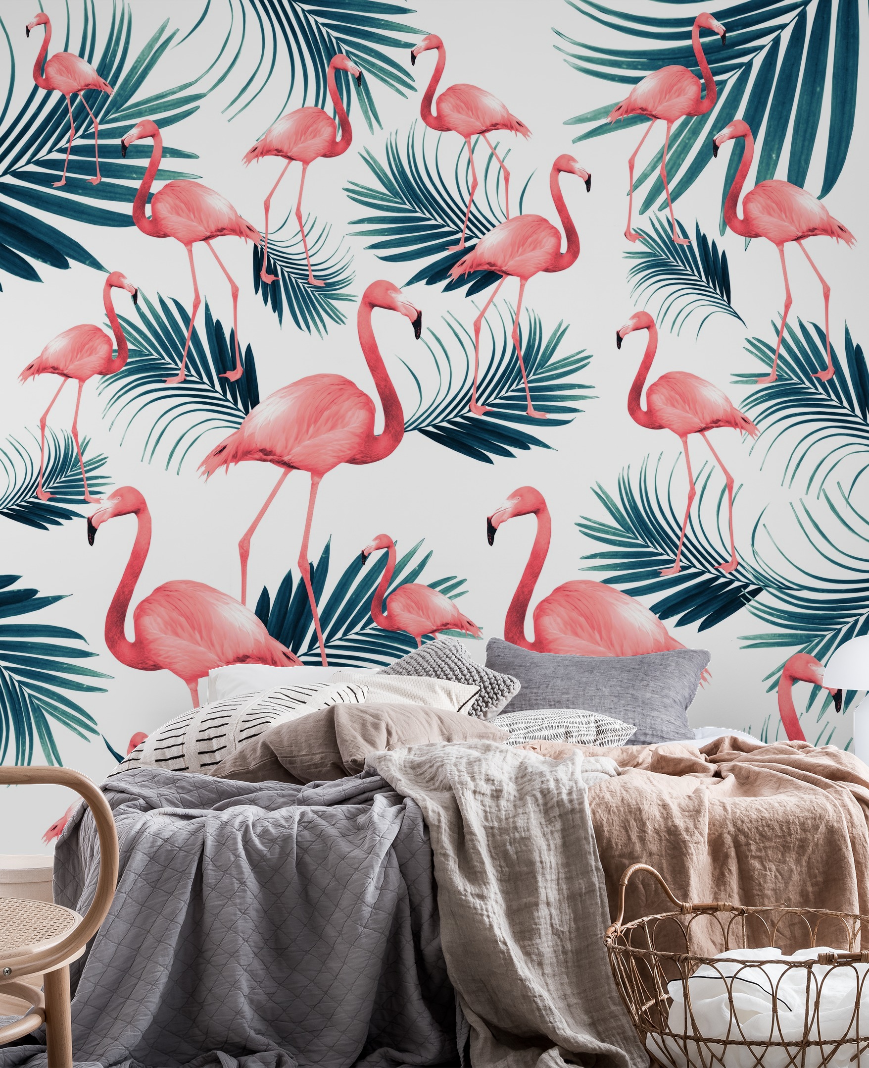 Summer Pink Flamingos Wallpaper Mural Wallsauce Us