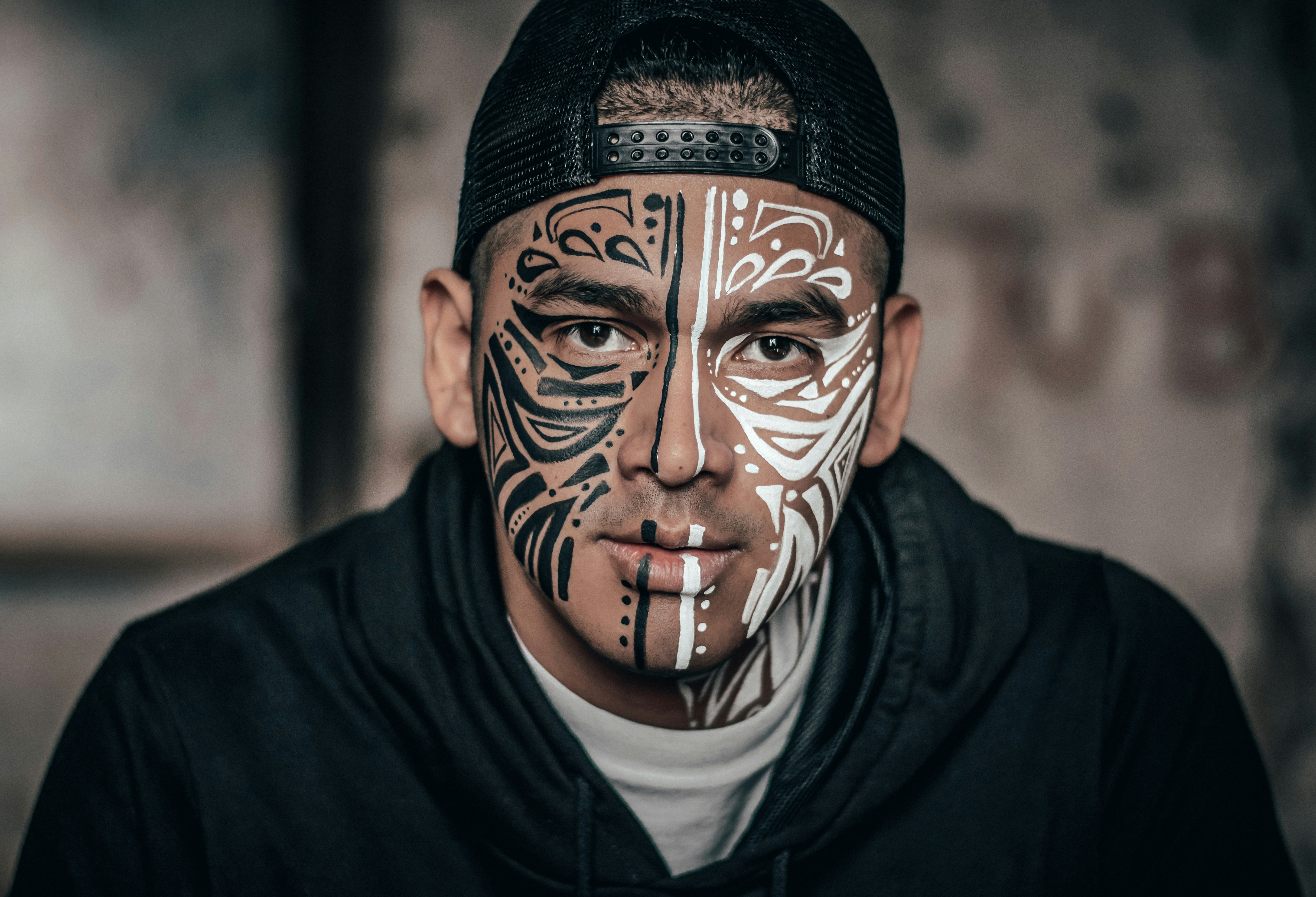 Man With Black And White Face Tattoo Photo Free Face Image On Unsplash